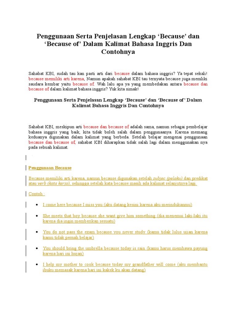 Contoh soal because dan because of contoh kalimat so that dan artinya.yang digunakan sebagai penghubung yang menjadi bagian grammar dalam suatu kalimat.